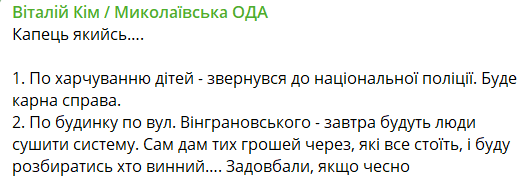 Відреагував на скандал і голова Миколаївської обласної військової адміністрації Віталій Кім, який також є депутатом міської ради.