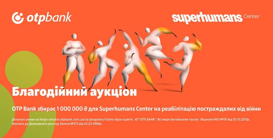 АТ "ОТП БАНК" та Superhumans Center розпочали проведення благодійного аукціону "Різдво для Суперів". Його мета – збір коштів, що будуть спрямовані на лікування та реабілітацію українців та українок, які отримали травми і втратили кінцівки на війні.