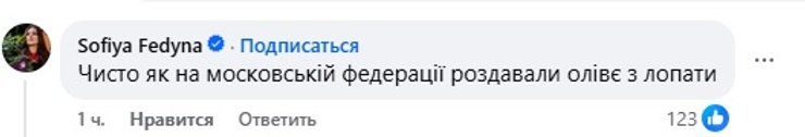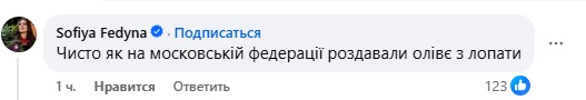 "Чисто як на московській федерації роздавали олів'є з лопати", — відреагувала вона.