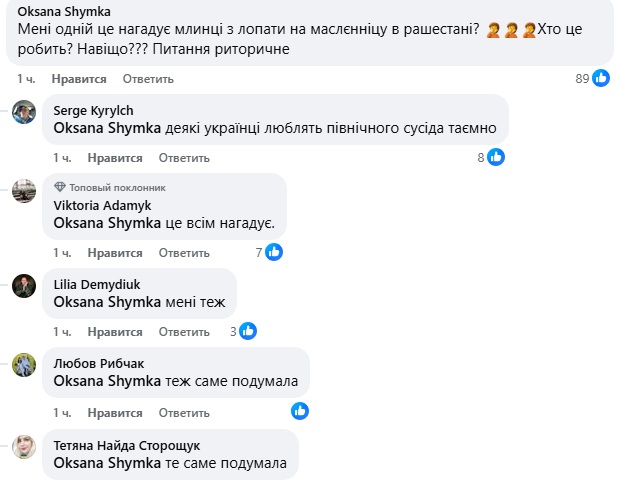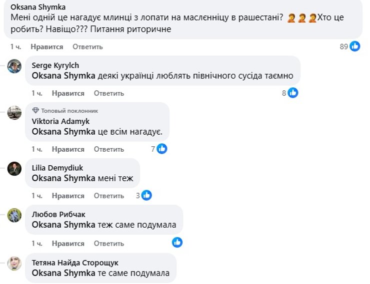 Проте подібний рекламний трюк зайшов не всім. У мережі розгорілася жвава дискусія, і багато хто провів паралелі між тирамісу з ковша і млинцями з лопати в Росії. У коментарях зазначилася навіть народна депутатка України Софія Федина.