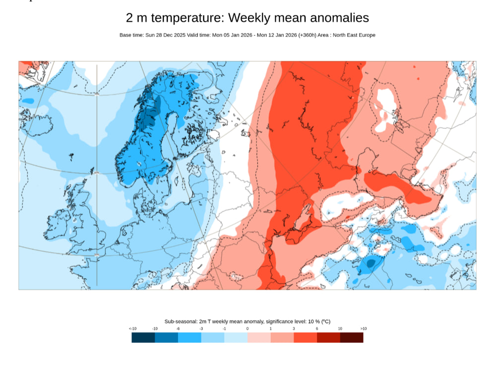Також, як пише "Телеграф" із посиланням на дані прогностичної моделі ECMWF, найбільші температурні відхилення від кліматичної норми очікуються на півдні, у центральних та східних областях у період з 5 по 12 січня. У цей час в одних регіонах пануватиме відлига, тоді як в інших зберігатиметься холодніша погода.