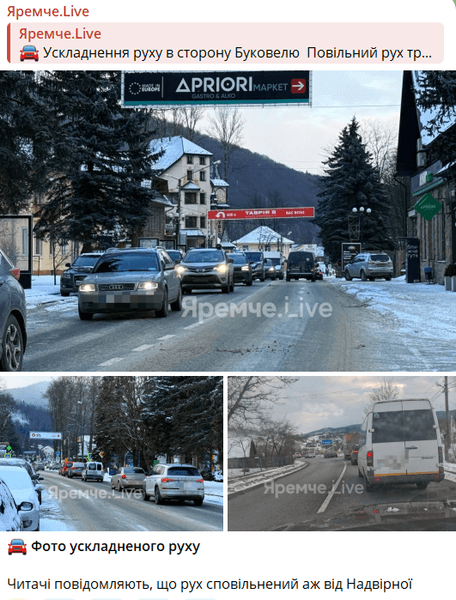 Рух на під'їзді до Буковеля ускладнено | Фото: Яремче.Live/Telegram