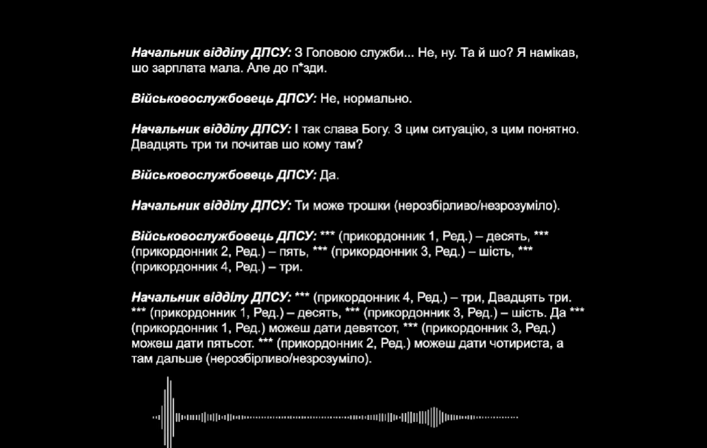 "Плівки" НАБУ були опубліковані разом із оголошенням підозри ДПСУ 22 січня. На одному з записів начальник відділу Держприкордонслужби розповідає про одержання 66 000 євро і зазначає, що це "колосальні гроші".