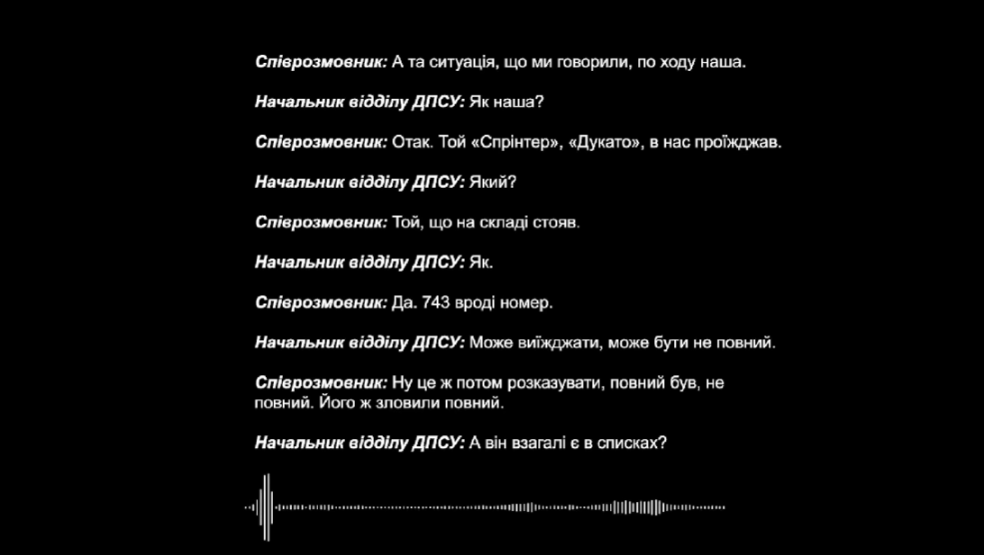 В НАБУ показали діалог, як стверджується, топпосадовця та начальника відділу ДПСУ, під час якого вони обговорювали розподіл хабаря.
