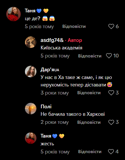 Також цей ролик опублікований на сторінці акаунту asdfg7419 в TikTok. Власник акаунту стверджує, що інцидент стався "на Академі" — імовірно, йдеться про станцію метро "Академмістечко" у Святошинському районі на правому березі.