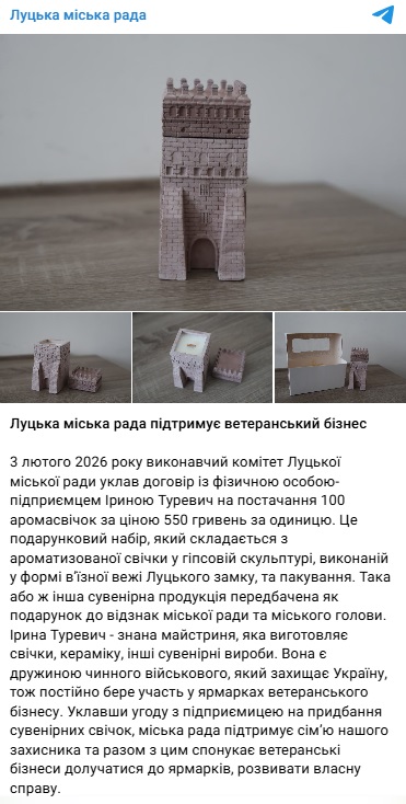 "Уклавши угоду з підприємцем на придбання сувенірних свічок, міська рада підтримує сім'ю нашого захисника і водночас спонукає ветеранські бізнеси долучатися до ярмарків, розвивати власну справу", — наголосили в мерії.