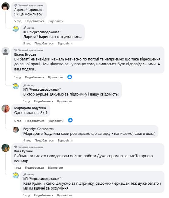 "Коли розгадаємо цю загадку — напишемо. Самі в шоці", — відповіли водоканалівці.