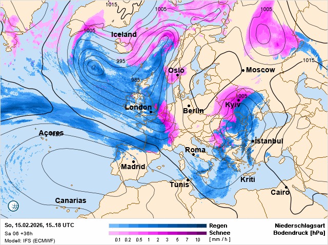 У неділю 15 лютого, на заході та півночі країни через циклон з півдня в Україні очікується сильний мокрий сніг, налипання мокрого снігу, рвучкий північно-східний вітер із штормовими поривами. Про це повідомила синоптикиня Наталка Діденко.