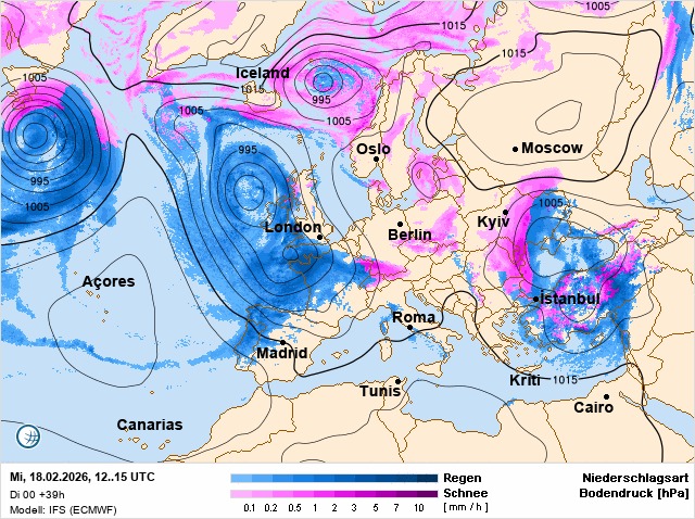 В Україну 18-го лютого прийде південний циклон, який принесе сніг, дощі, ожеледицю та сильний вітер у більшості регіонів. Найскладніші погодні умови очікуються у центральній частині країни. Але наприкінці тижня буде стійке потепління.