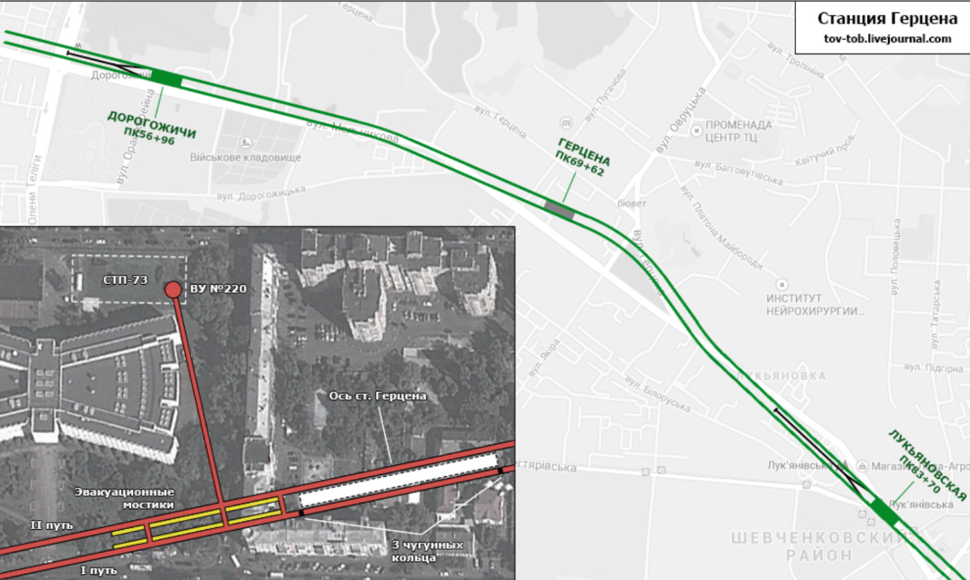 Про "секретну" станцію метро Києва пише 26 лютого "Телеграф". Вона розташована на зеленій гілці, між станціями "Дорогожичі" та "Лук'янівська".