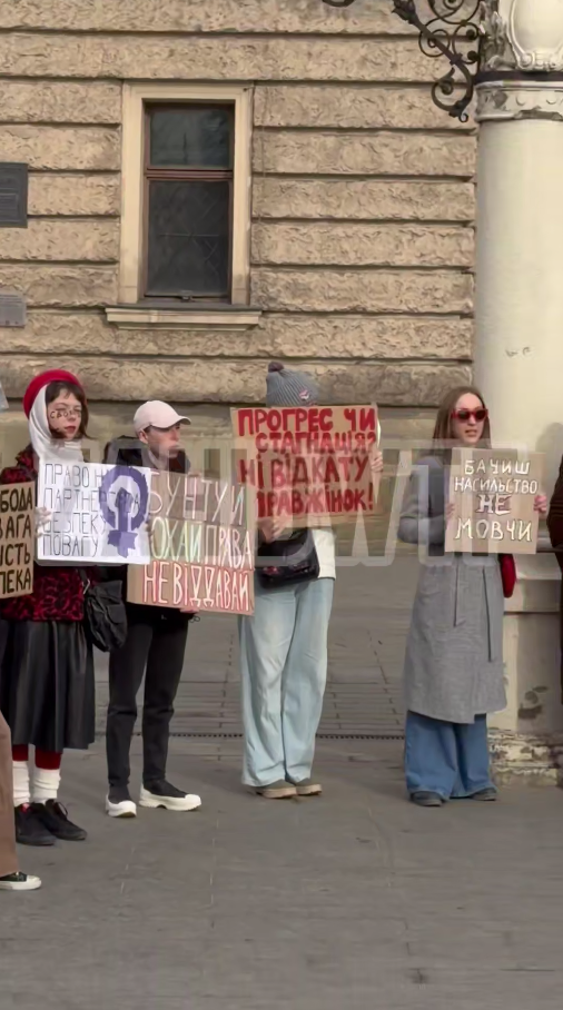 Під час мирної акції, присвяченій правам жінок, невідомі у масках кинули траурний вінок. Подія сталася у Львові.