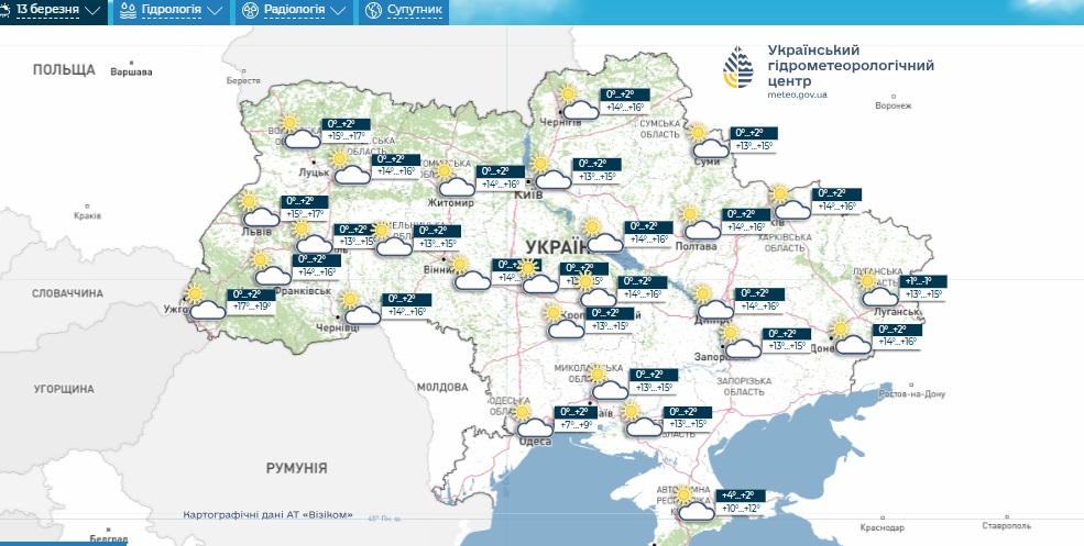 Погода в Україні на 13 березня