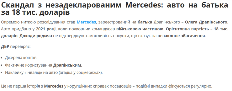 Зазначимо, що на Mercedes є наклейка "людина з інвалідністю". У ЗМІ звертали увагу на те, що доходи батька, на якого оформлено іномарку, не відповідають її вартості, що знову викликало запитання щодо походження коштів на купівлю.