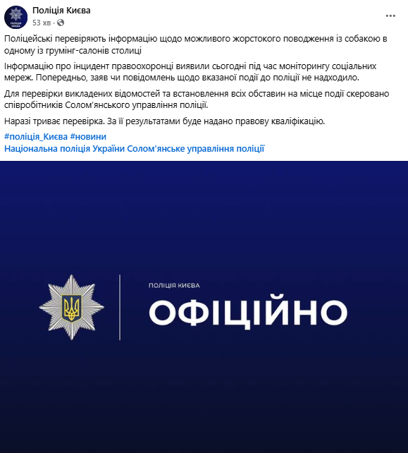 поліція києва реакція на поводження з собакою у грумінгсалоні