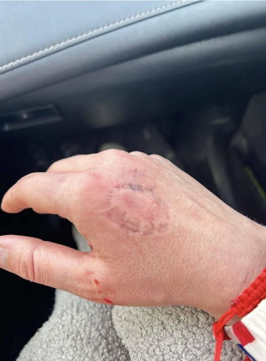 Вона також оприлюднила фото понівеченої руки, на якій видно сліди укуса.