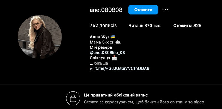 На основну сторінку блогерки в Instagram підписано 370 тисяч людей, на резерв — понад 75 тисяч. Анна Жук показувала своє життя та мала активну громадянську позицію.