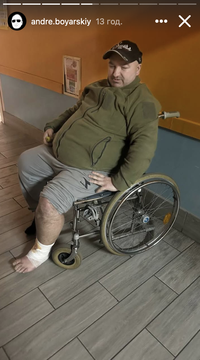 З показаного у соцмережах зрозуміло, що під час перебування у лікарні він пересувався на кріслі колісному або на медичній каталці. Поза стінами закладу він пересувався на милицях.