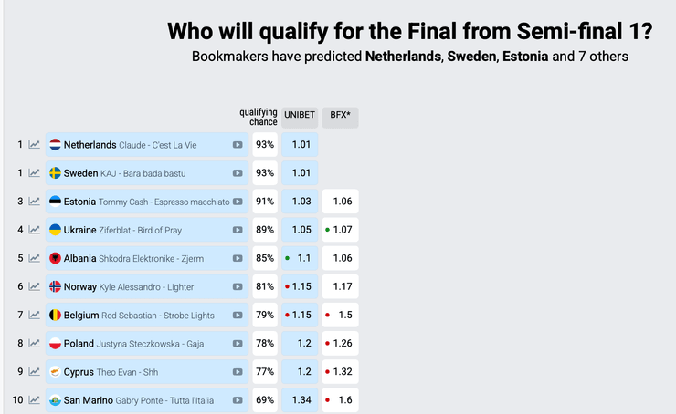 Такі прогнози зʼявилися на сайті пісенного конкурсу.