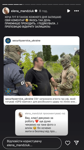 Ба більше, цього ж дня Мандзюк показала, що часто пише коментарі на сторінці СБУ з проханням перевірити діяльність її колеги по цеху.