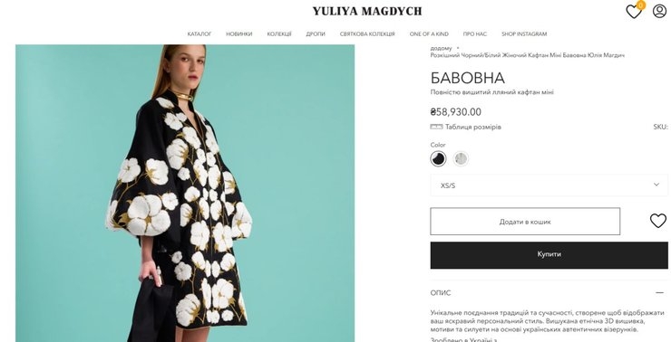 Народна депутатка цього дня продемонструвала лляний повністю вишитий темний кафтан міні від української дизайнерки Юлії Магдич "Бавовна". Ціна такого вбрання становить майже 59 тисяч гривень, згідно із сайтом бренду.