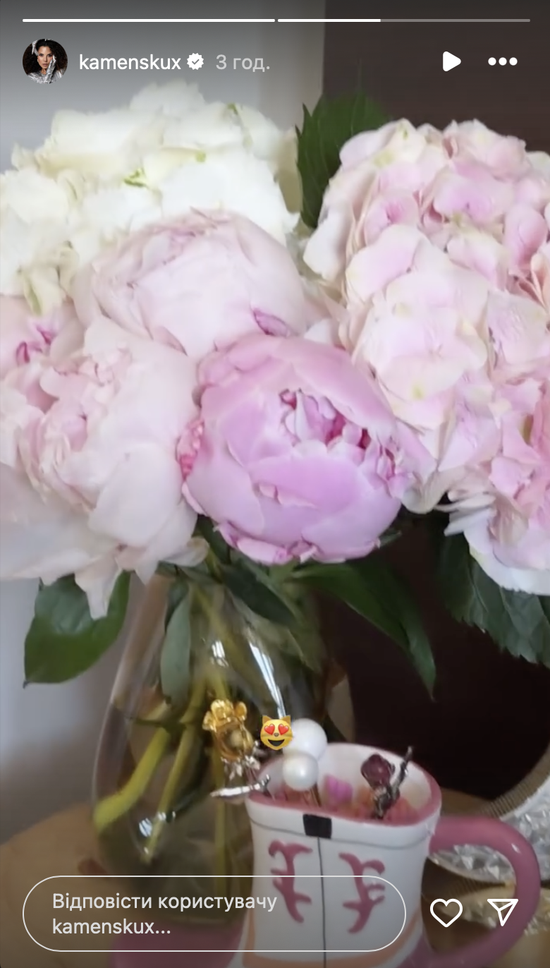 Ба більше, співачка показала ймовірний подарунок від чоловіка — букет півоній.