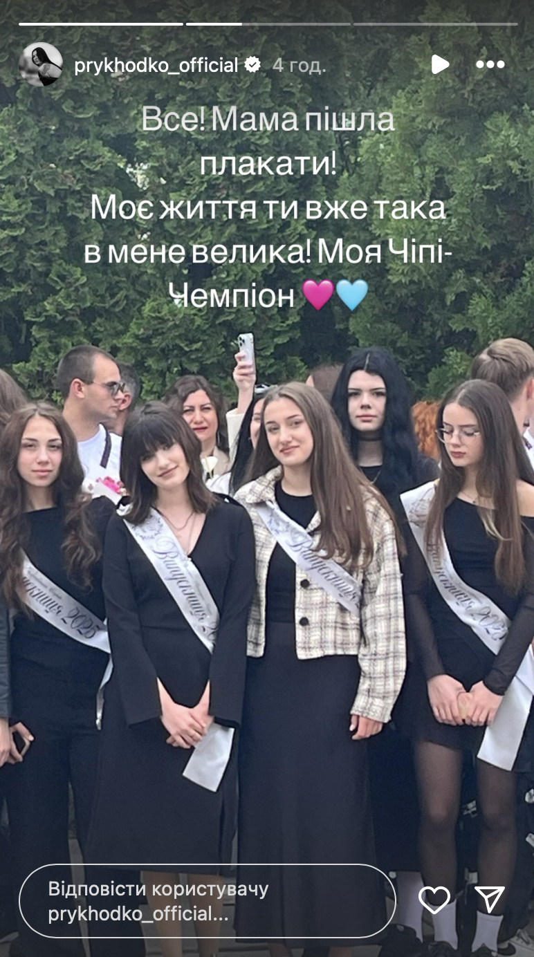 "Моє життя, ти вже така в мене велика! Моя Чіпі-Чемпіон", — написала Приходько.