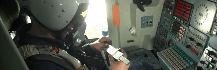 У відео, опублікованому Міноборони РФ, видно, як штурман тримає в руках логарифмічну лінійку, яку почали випускати 1987 року.