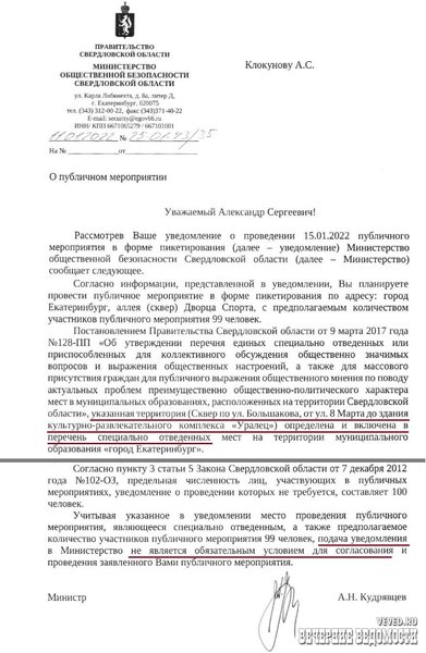 Проте в день проведення акції правоохоронці перешкоджали її проведенню. Ймовірно, цьому сприяла місцева влада та особисто губернатор Свердловської області Євген Куйвашев. Він прибрав з переліку спеціальних місць для публічного висловлювання громадської думки сквер, у якому і анонсувався пікет.