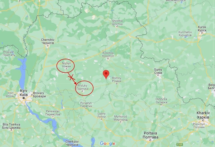 Також мер окремим постом об 11:46 повідомив, що цивільним категорично заборонено їхати у бік міста Прилуки. У коментарях під цією посадою повідомляється імовірно жителями Прилука, що чути канонаду з боку с. Талалаївка (на межі Чернігівської та Сумської областей, позначено міткою на карті).