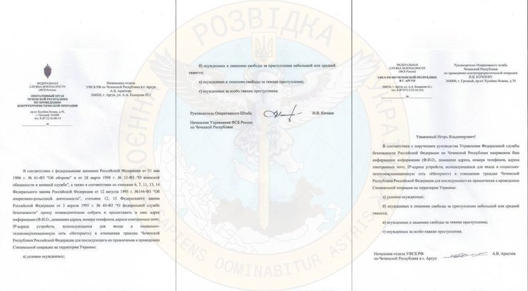 До рук української розвідки потрапило розпорядження ФСБ, в якому сказано зібрати та надати інформацію про громадян Чеченської республіки РФ для подальшого їх залучення до війни в Україні, зокрема: