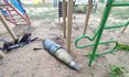Очевидці публікують фото снаряда, що впав на дитячий майданчик, але не розірвався.
