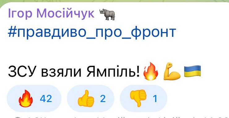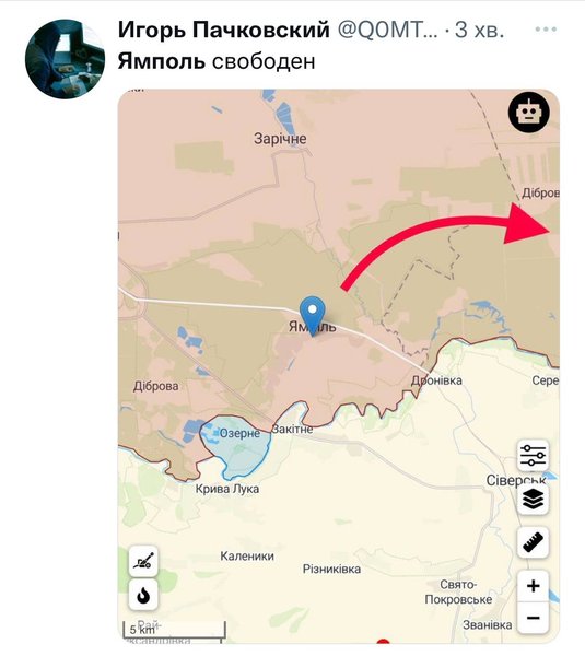"ЗСУ взяли Ямпіль", — прокоментував він.