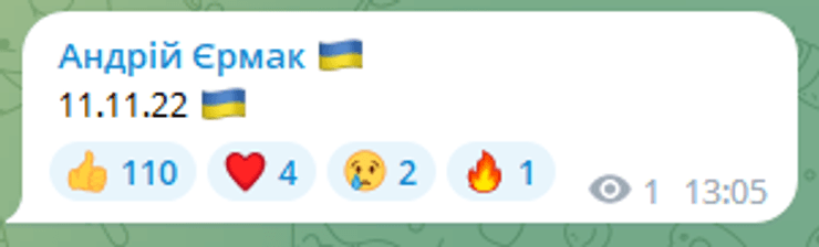 "Судячи з поста Єрмака, 11 листопада увійде в історію як день початку звільнення Херсона", — зауважив канал "Вертикаль".