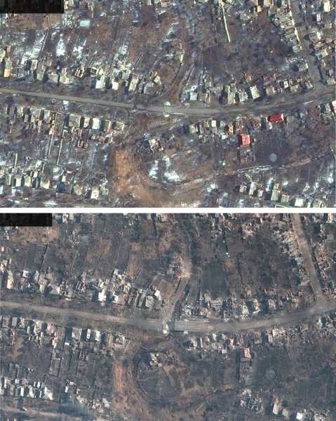 Супутникові знімки свідчать, що найбільших руйнувань зазнала східна частина міста, яку, як заявляють російські засоби пропаганди, захопили ЗС РФ.