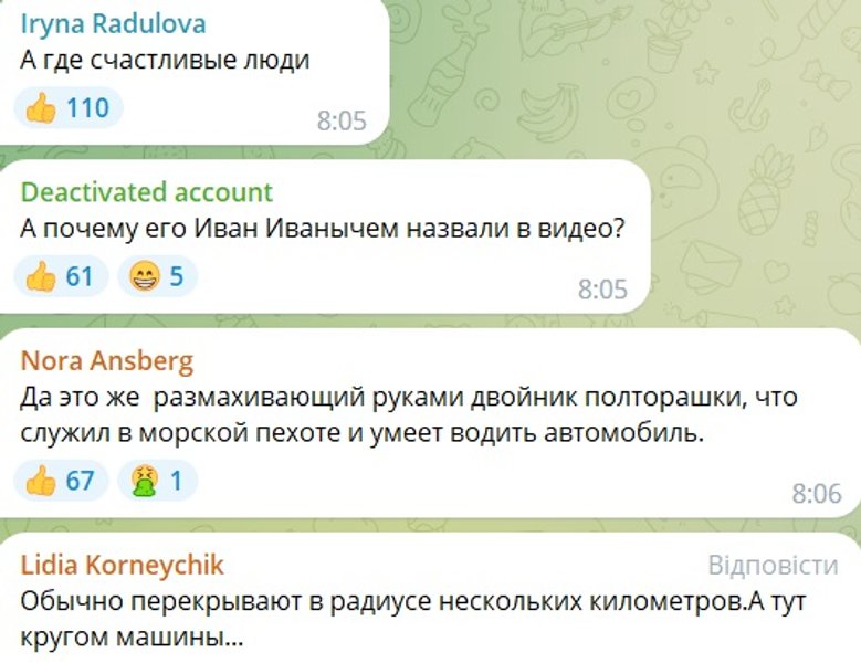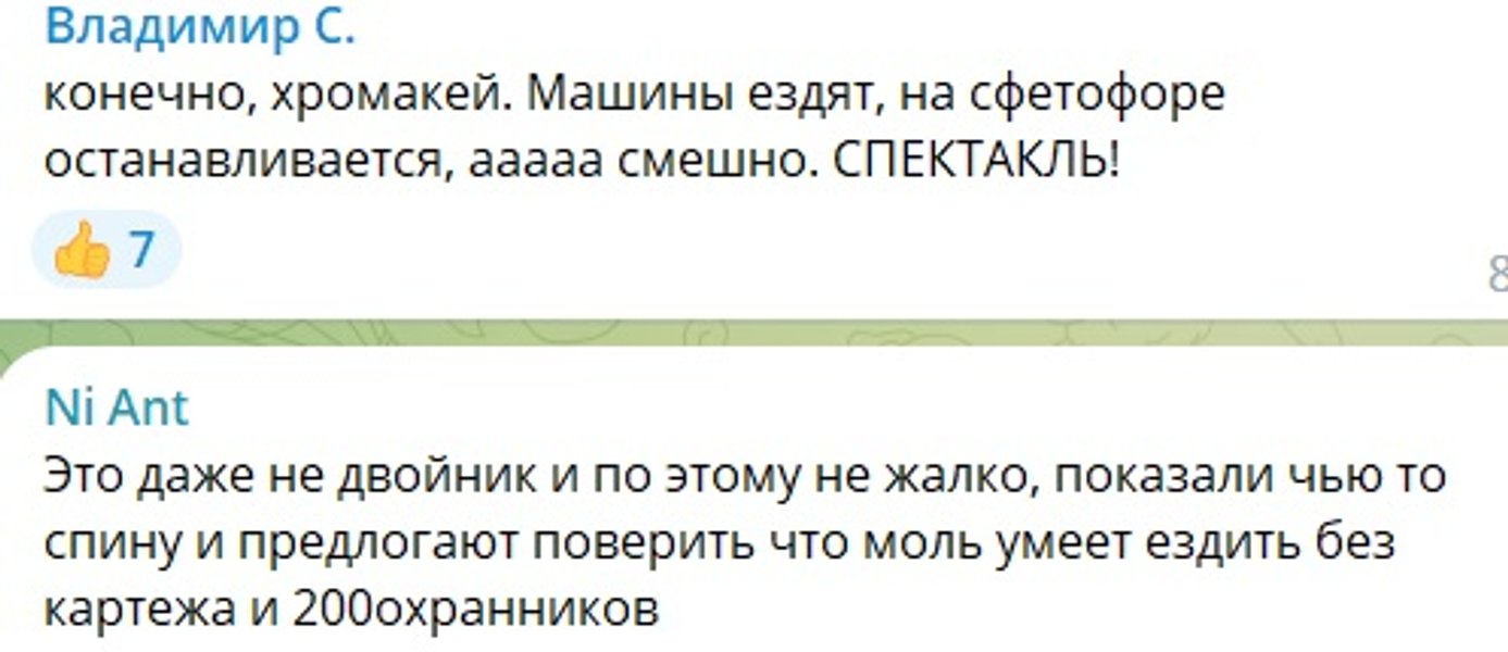 Ще один момент, на який звернули увагу користувачі, — Путін пропускає трактор на перехресті, хоча, як правило, під час його руху перекривають дороги на тривалий час. Крім усього іншого, він практично нічого довшого за пару слів не говорить.