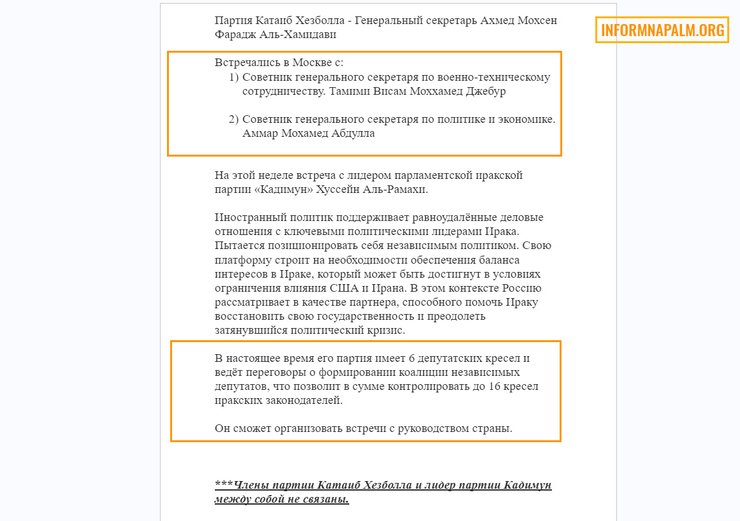 В Іраку, згідно з листуванням, Багдасарова передусім цікавлять політики, які можуть організувати зустрічі з керівництвом держави. Хакери дістали документ, який свідчить про зустріч Багдасарова з іракськими політиками від шиїтського угруповання Катаіб Хезболла та партії Кадимун. Дочка Багдасарова, Анна, заміжня за громадянином Іраку і вони мають спільну дитину, яка народилась в ОАЕ, де у Багдасарова є фірми-прокладки.