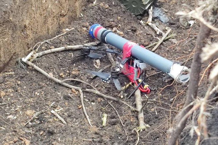 "Російська армія застосовує саморобні дрони-камікадзе по позиціях аеророзвідки Національної гвардії України. До саморобних або китайських не прошитих квадрокоптерів прикріпляється труба або пластикова пляшка, в якій замішано приблизно 300 грамів пластиду з металевими дрібними разючими елементами з дистанційним підривачем", — повідомили в НГУ.