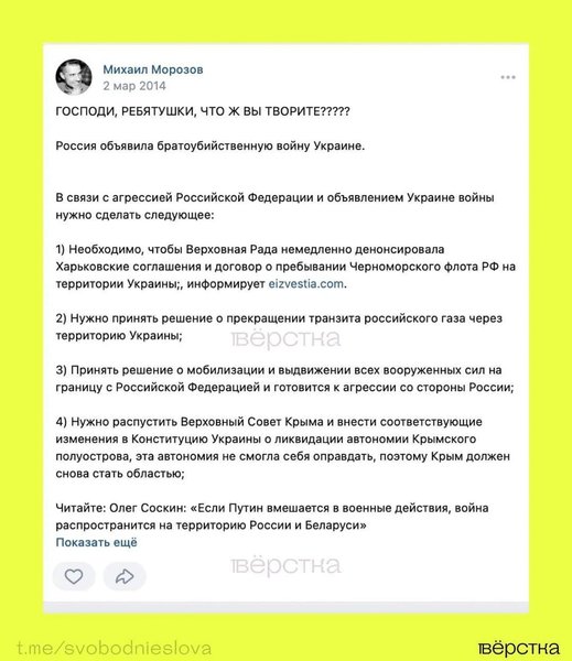 Морозов радив провести в Україні мобілізацію, відправити війська до кордону з Росією, перекрити транзит газу та денонсувати "Харківські угоди".