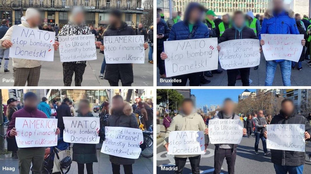 У співпраці з іншими європейськими медіа данський телеканал виявив фальшивих протестувальників на десяти протестах, які пройшли в період між груднем та березнем у Гаазі, Парижі, Брюсселі та Мадриді. Цікаво, що на плакатах присутні ті самі орфографічні помилки.