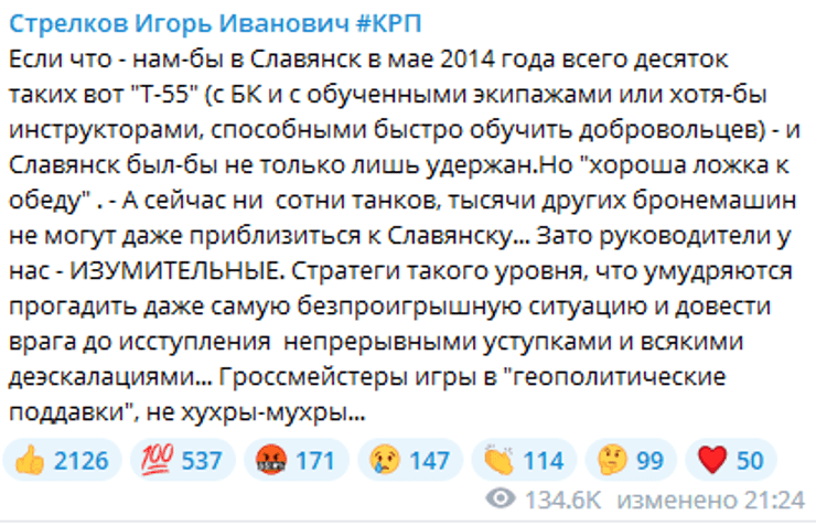 Але, тим часом, конструкція розсмішила навіть терориста Ігоря Гіркіна-Стрєлкова, він назвав це "дивом військової техніки" та розписав функціонал у всіх фарбах.