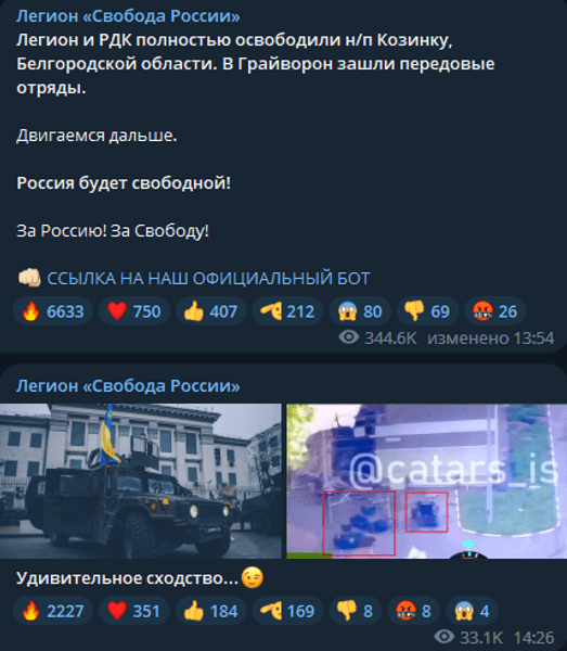 Перед цим російські добровольці заявили, що їм вдалося провести новий рейд у Бєлгородській області Російської Федерації. Йдетьс про бійців "Російського добровольчого корпусу" та легіону "Свобода Росії". Вони просунулися на 10 кілометрів від кордону та зупинилися поряд із селами Безлюдівка, Чуровичі та Любимівка.