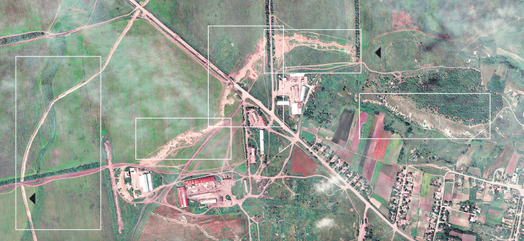 На інших супутникових знімках видно глибокі траншеї прямо перед лінією дерев, що використовуються для маскування артилерійських позицій, які можуть завдати удару по силах, що наближаються.