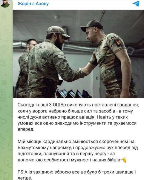 Жорін зазначив, що бійці змогли кардинально змінити ситуацію на Бахмутському напрямку. Наразі триває рух вперед завдяки підготовці, плануванню.
