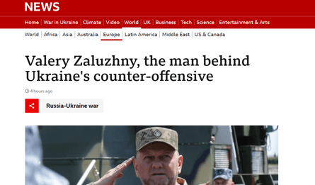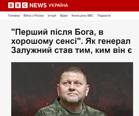 А на головному сайті ВВС в англійській версії текст статті скоротили. Матеріал про Залужного називається "Valery Zaluzhny, the man behind Ukraine's counter-offensive" (Валерій Залужний, людина, яка стоїть за контрнаступом України, — ред.)