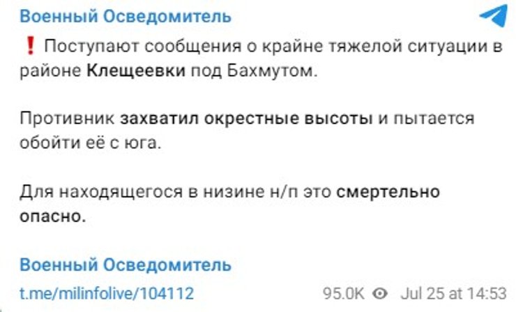 Зазначимо, що на момент публікації українські офіційні джерела не повідомляли про відхід російських військ із Кліщіївки або про взяття під контроль населеного пункту Силами оборони.
