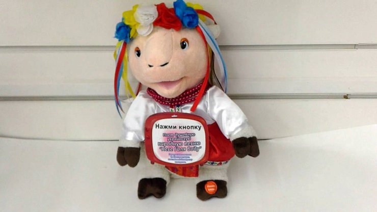 Іграшкою виявилася овечка у національному українському вбранні з віночком на голові. Коли на неї натиснути, можна почути душевну українську народну пісню "Несе Галя воду".