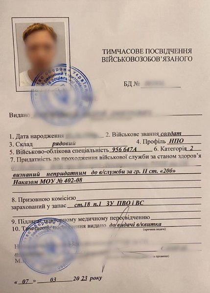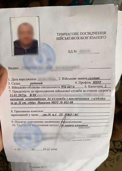 "Виявлено та вилучено медичну документацію, журнали реєстрації медичних висновків, довідок амбулаторних пацієнтів, інші медичні та облікові документи. За адресами місць проживання ухилянтів виявлено та вилучено оригінали довідок про непридатність до військової служби за станом здоров’я, тимчасові посвідчення військовозобов’язаних із зазначенням непридатності до військової служби", — йдеться у повідомленні.