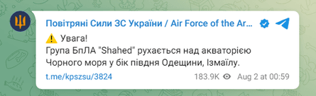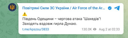 Зазначимо, що в ніч на 2 серпня в Повітряних силах ЗСУ повідомляли, що ворожі дрони рухалися в бік Ізмаїла, де розташований морський торговельний порт. Пізніше також повідомлялося, що БПЛА заходили з боку гирла Дунаю.