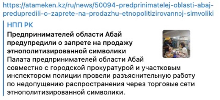 Держоргани спільно з Генпрокуратурою РК опрацьовують правові підстави для заборони реалізації етнополітизованої символіки в Казахстані.