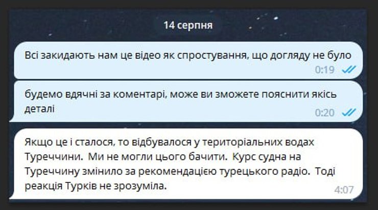 Пізніше надійшло повідомлення, що Міноборони РФ збрехало про інцидент і насправді турецьке судно проігнорувало вимоги росіян зупинитися і змінило курс у напрямку територіальних вод Туреччини.